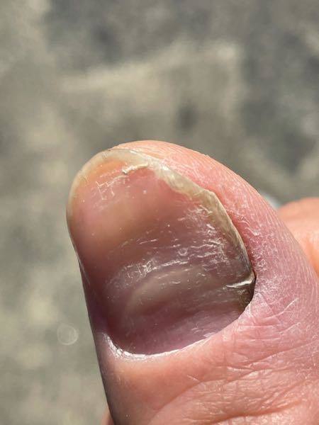 手の親指の爪が凸凹して右側は黒ずんで全然治りません。 - 以前皮膚科